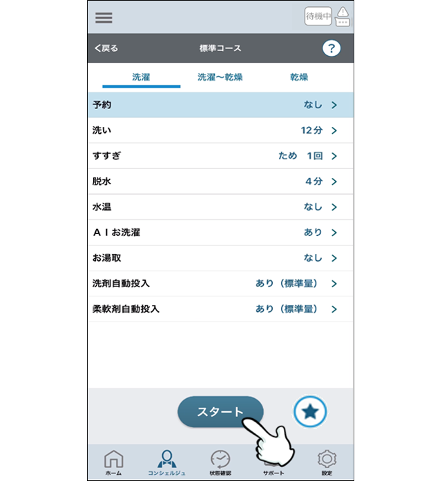 ・運転を開始するためには、洗濯機を遠隔操作待機状態(リモート状態)にする必要があります。