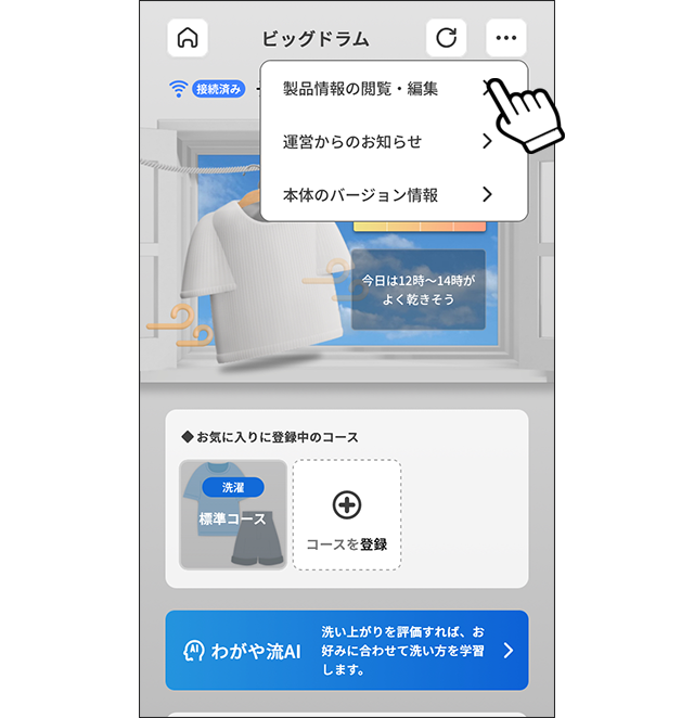 スマートフォンに登録されている洗濯機の情報を削除することができます。スマートフォンを変更する前などに行ってください。