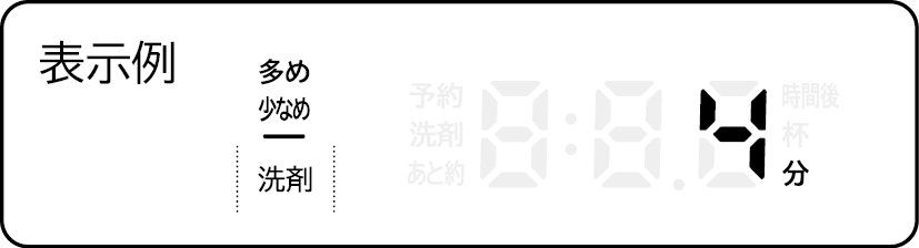 タッチするごとに表示が切り替わり、「多め」「少なめ」と残時間表示部に時間が表示されます。