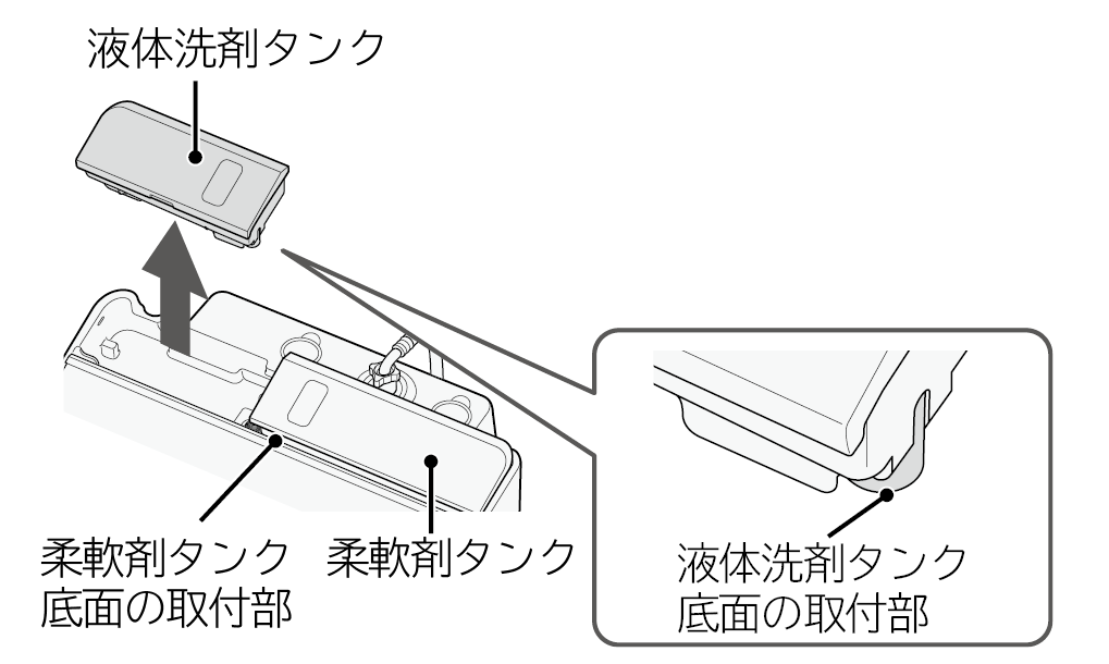 自動投入部(液体洗剤タンク・柔軟剤タンク)・タンク取付部