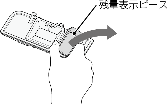 黄色の残量表示シールがはがれるおそれがあるため、ブラシなどで強くこすらないでください。