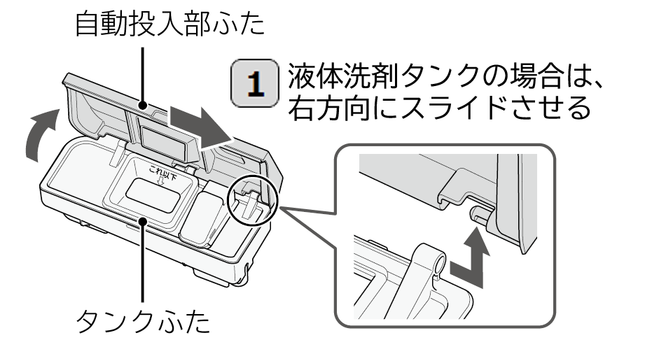 (柔軟剤タンクの場合は、右方向にスライドさせる)
