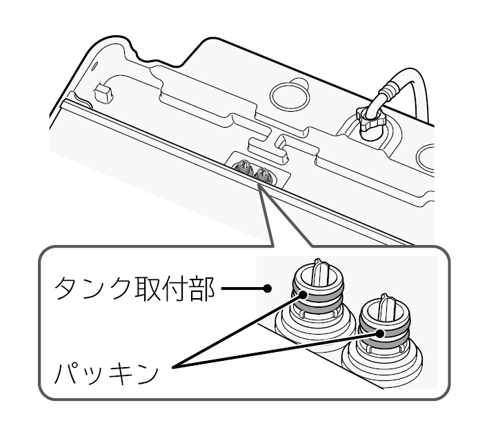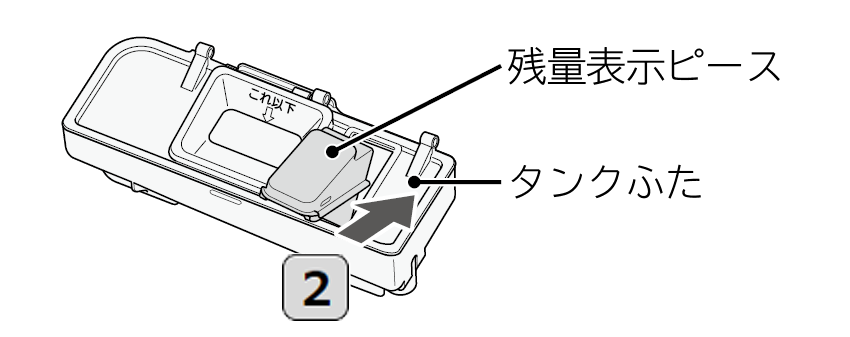 - タンクふたのつまみをタンク背面のつめに取り付ける
