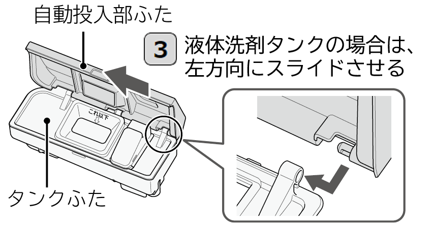 (柔軟剤タンクの場合は、左方向にスライドさせる)