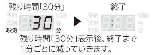 約30分間、洗濯・脱水槽をエアジェット運転して乾燥します。