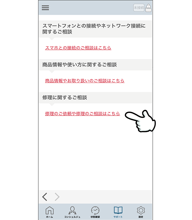 画面をスクロールさせると「修理に関するご相談窓口」が表示されます。