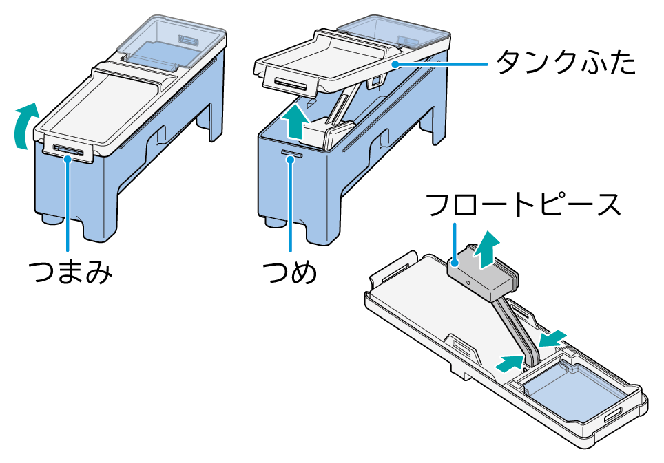 タンクの取っ手を持ってまっすぐに引き上げて取り外す