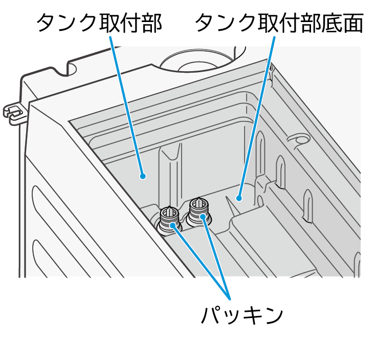 お手入れ後に液体洗剤タンク・柔軟剤タンクを取り出して、残った水を捨ててからタンク内やタンク取付部周辺を柔らかい布で完全にふき取ってください。