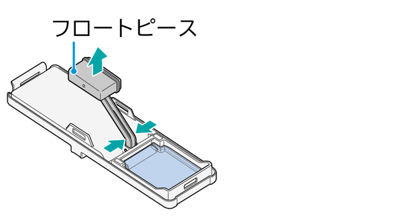フロートピースの根元を両側から挟んでタンクふたから取り外す