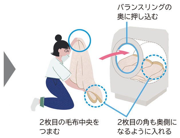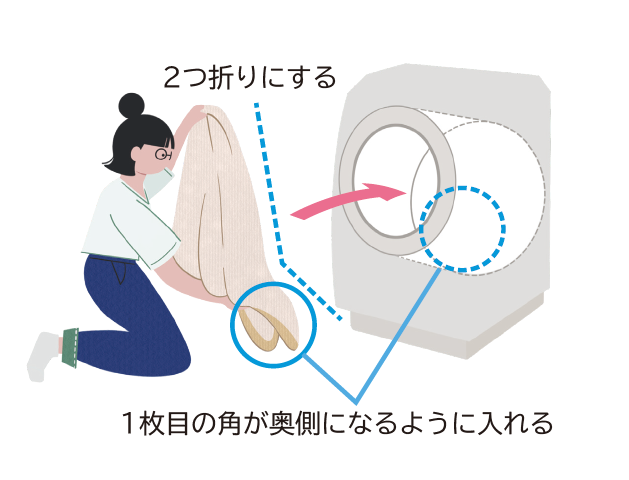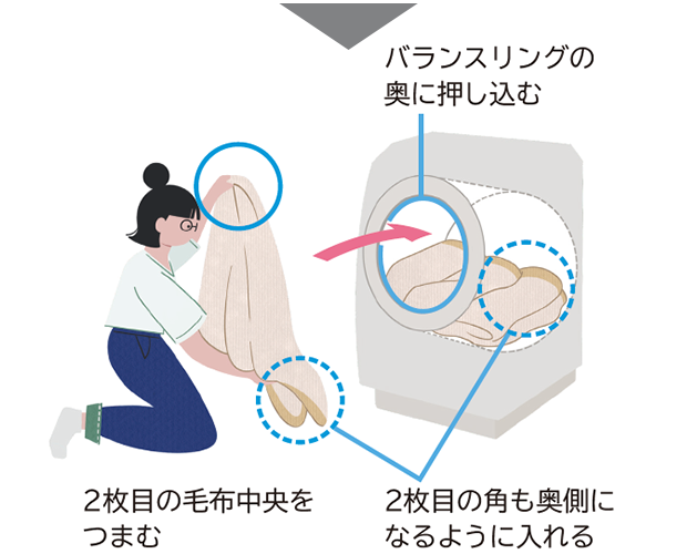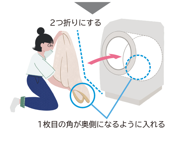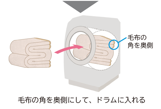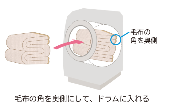 毛布、掛けふとん、ベッドパッド、カーテンなどを洗うときは、「毛布」コース以外では運転しないでください。洗濯物を傷める原因になります。