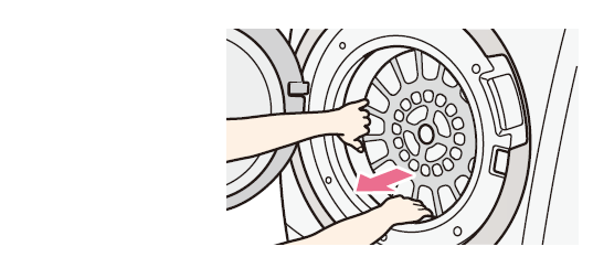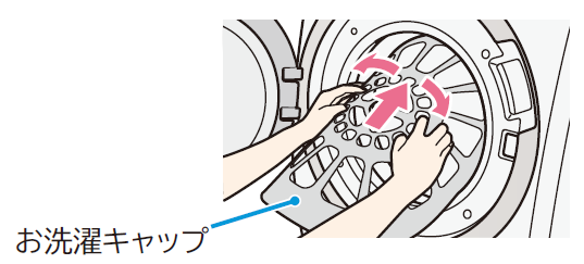 お洗濯キャップの外側を手前に引き、ドラムの内側にあてる
