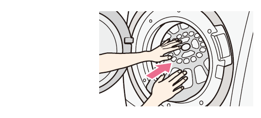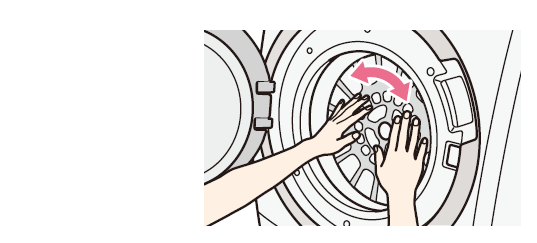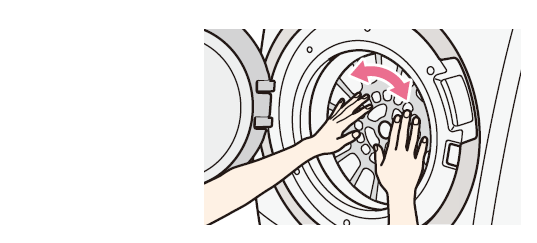 お洗濯キャップに手をかけて、ドラムがスムーズに動くことを確認する