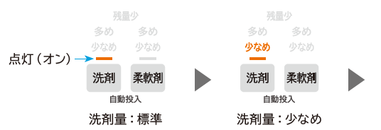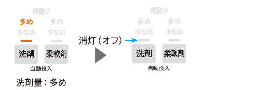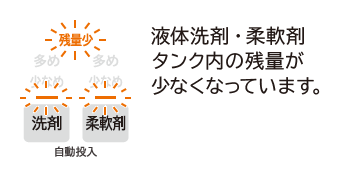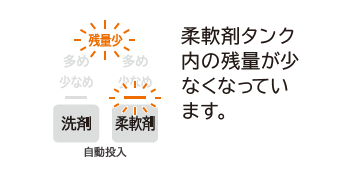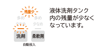 タンク内の液体洗剤や柔軟剤の残量が少なくなったときは、点滅でお知らせします。