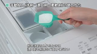 手動投入(洗剤・漂白剤・柔軟剤)の使いかた(2分26秒)