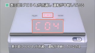 表示部に「C04」が点滅し 運転が中断している(3分45秒)