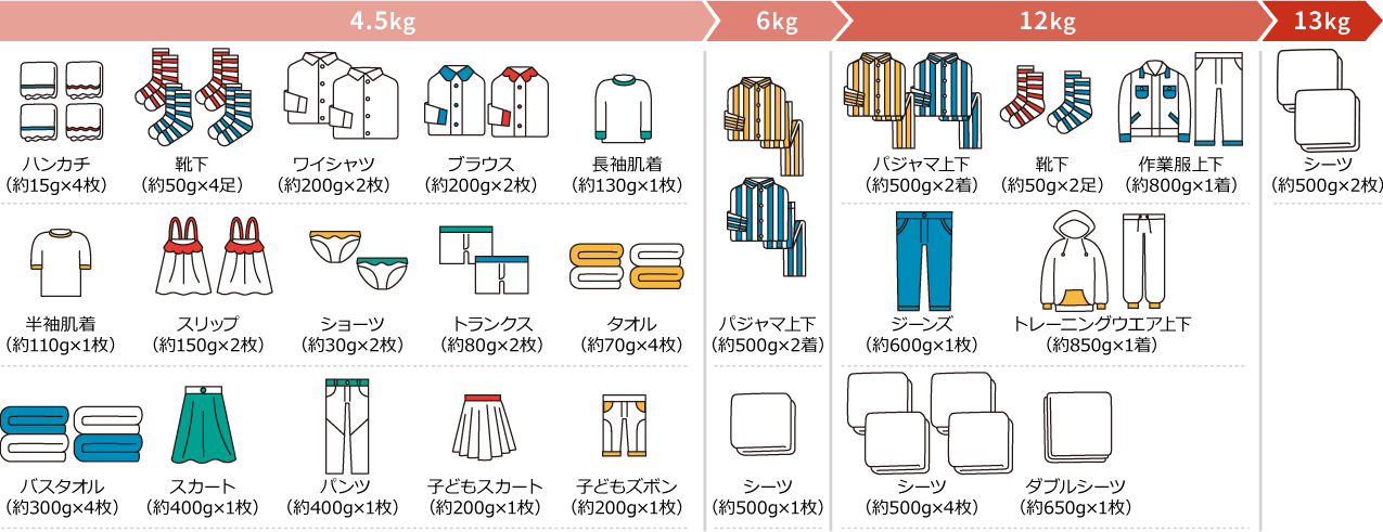 ※各衣類の重さの目安は、一般社団法人 日本電機工業会・自主基準によるものです。