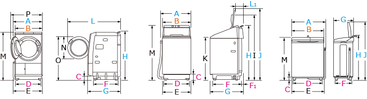 A・G・H・J・L・L1の値を、各商品の寸法図で確認してください。