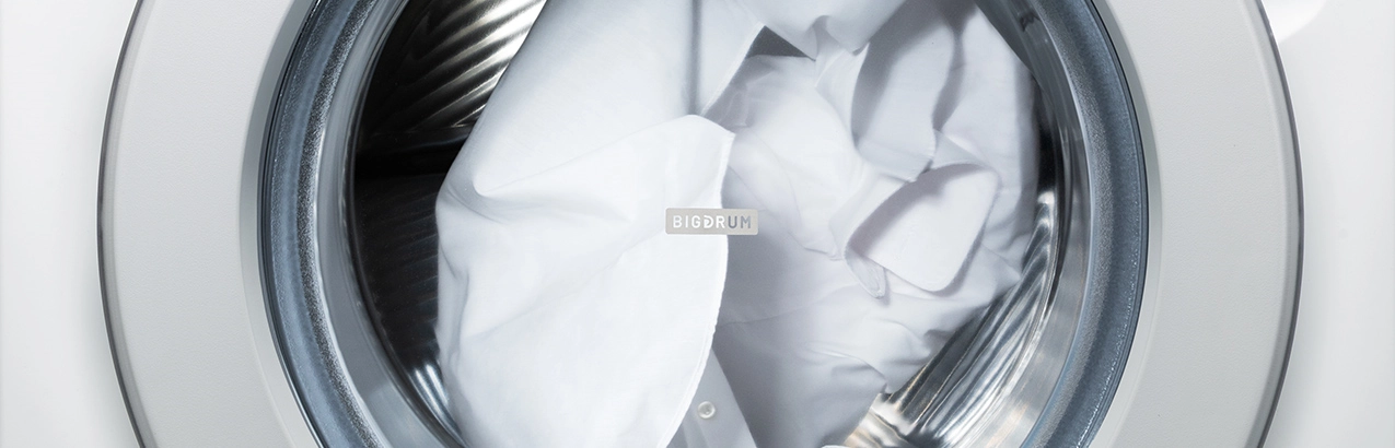直径約53cmの大きなドラムと高速風の力で、シワを伸ばしてしっかり乾燥。手前から衣類に直接風を当てることで袖まできれいに。