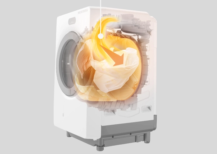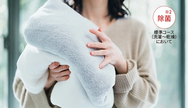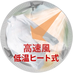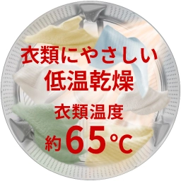 ※1 当社調べ。洗濯〜乾燥コースにおいて。一般社団法人 日本電機工業会で定めた試験布に温度センサーを取り付けて計測。乾燥時の温度は衣類の素材により異なります。また、乾き具合によっては、乾燥運転を延長し温度が高くなる場合があります。