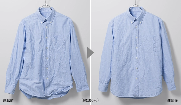 ※当社調べ。洗濯6kg運転後につり干ししたシャツ、BD-CX100P、スチームアイロンコース15分において。