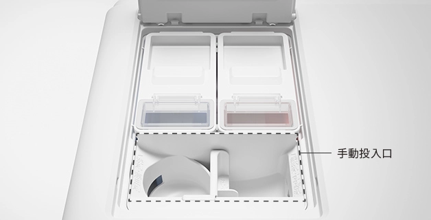 おしゃれ着用液体洗剤や漂白剤、粉末洗剤は、自動投入に対応していません。手動投入口に入れてください。