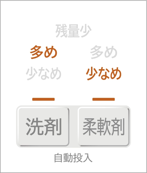 ※洗剤を多め、柔軟剤を少なめに設定したときの操作パネルの表示イメージ