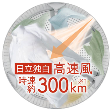 大容積のビッグドラムの中で衣類を大きく舞い上げながら乾燥。時速約300km※1の高速風を吹きかけて、シワを伸ばします。衣類を蒸らした状態で風を当てることで袖まできれいに。また、衣類温度約65℃※2の低温乾燥で、ふんわりやさしく仕上げます。