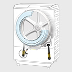 洗濯から乾燥までのホコリ・糸くずを、3つの自動おそうじ機能で、次の洗濯運転時に洗い流して、[大容量糸くずフィルター]へ集約。これからは、約1か月に1回のお手入れでOK。