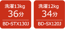 ※当社調べ。BD-STX130J、洗濯7.8kg(6割負荷)時、標準コースにおいて。衣類の量、汚れ、洗剤、コースの種類などによって効果は異なります。
