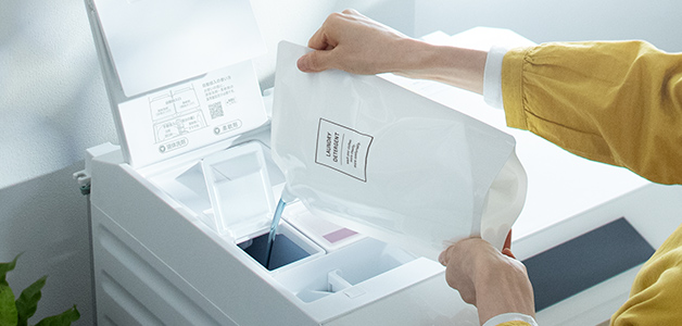 洗濯のたびに量って⼊れていた洗剤と柔軟剤。洗濯機が適量を自動で投⼊してくれるので、⼊れすぎも不⾜もなくなり、気持ちのいい洗い上がりに。