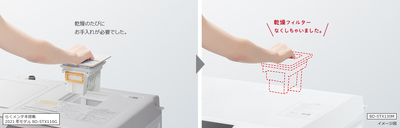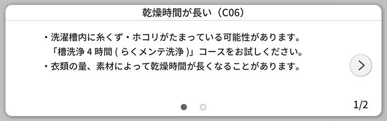 ※らくメンテ洗浄コースを運転するタイミングは使用状況に応じて操作パネルでお知らせします。すべての乾燥機能が改善するわけではありません。