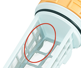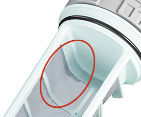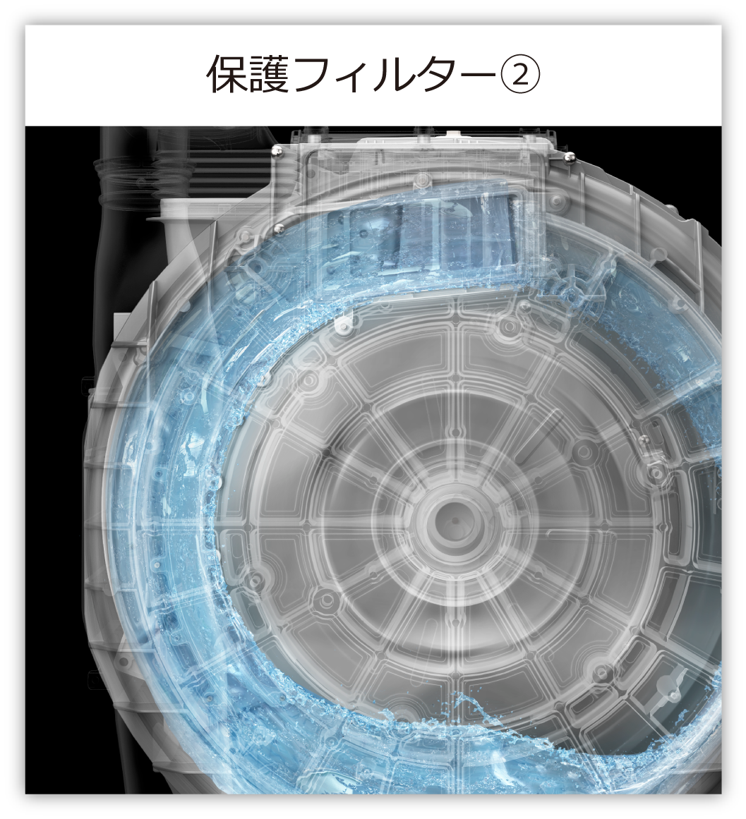 ドラムが回る遠心力で、下から保護フィルターを洗い流す。