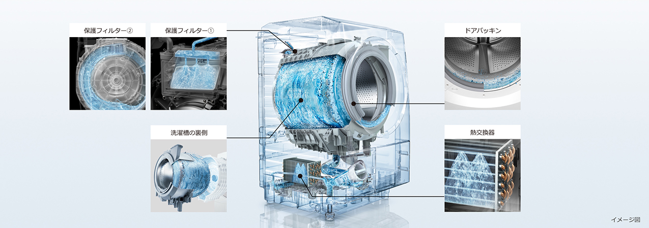 洗濯槽・乾燥経路・ドアパッキンを強力洗浄します。