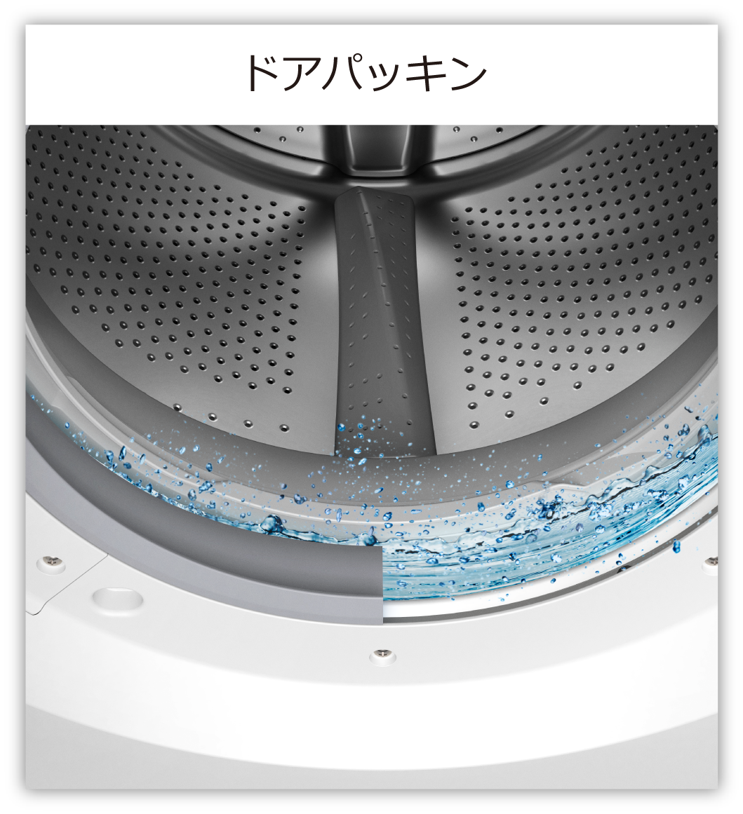 次の洗濯運転時に、ドアパッキンの裏側にたまったホコリや糸くずを専用のシャワーで洗い流す。