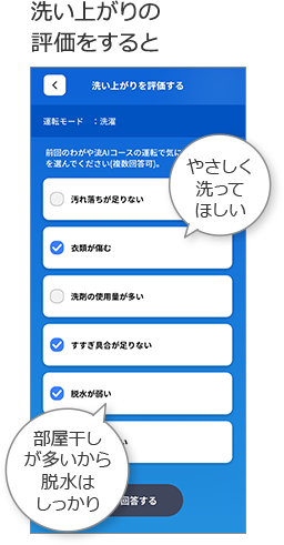 アプリで洗い上がりを評価するたびに、お好みの仕上がりに近づけていきます。