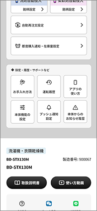 ※2025年モデルBD-STX130M・SX130M・SW120Mは「ハピネスアップ」アプリで連携します。それ以外の対応機種は「洗濯コンシェルジュ」アプリとなります。「洗濯コンシェルジュ」アプリについて詳しくはこちら