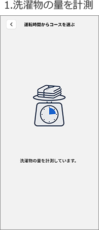 洗濯スタート前に、中に入れた衣類の量を計測し、各コースの運転時間を一覧で表示。