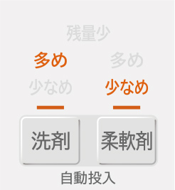 ※洗剤を多め、柔軟剤を少なめに設定したときの操作パネルの表示イメージ