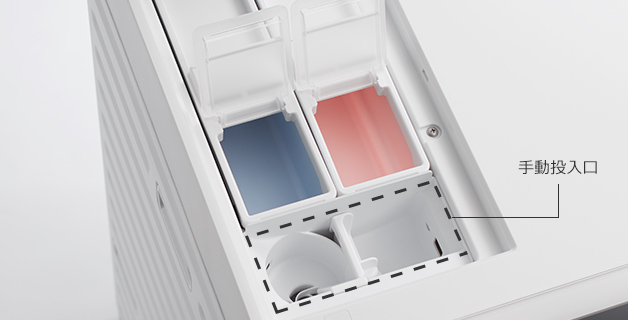 おしゃれ着用液体洗剤や漂白剤、粉末洗剤は、自動投入に対応していません。手動投入口に入れてください。