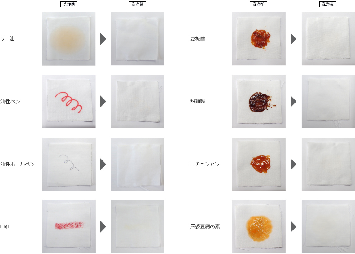 送風機能を利用して水分を蒸発させて、洗剤の力を引き出す。さらに、衣類をもみほぐして洗剤を浸透させる。