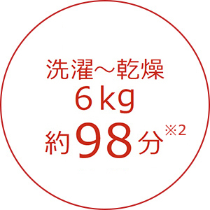 ※1 当社調べ。洗濯〜乾燥コースにおいて。一般社団法人 日本電機工業会で定めた試験布に温度センサーを取り付けて計測。乾燥時の温度は衣類の素材により異なります。また、乾き具合によっては、衣類の温度が高くなる場合があります。