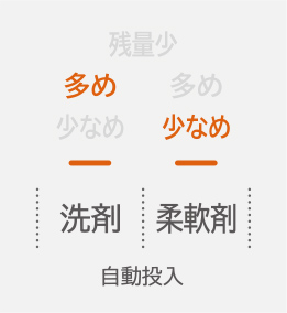 ※洗剤を多め、柔軟剤を少なめに設定したときの操作パネルの表示イメージ