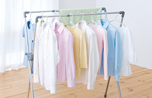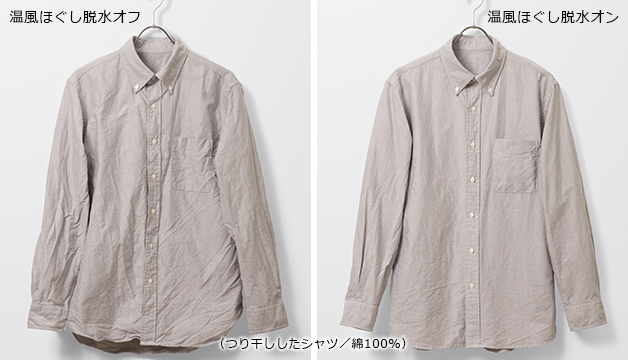 衣類をほぐしながら温風を吹きつけることで、干したときのシワを減らします。衣類が温かいので寒い季節でも衣類が冷たくなりません。