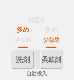 ※洗剤を多め、柔軟剤を少なめに設定したときの操作パネルの表示イメージ