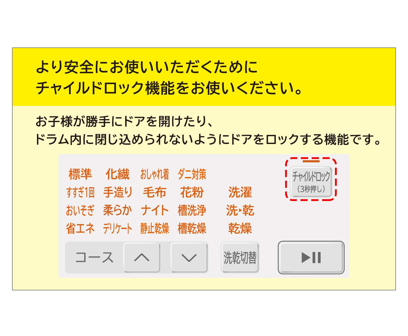 より安全にお使いいただくためにチャイルドロック機能をお使いください。