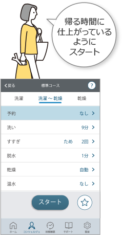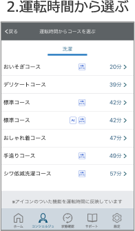 衣類の量や種類、片寄り、室温、据付状態等により、使用水量・消費電力量・運転時間が増減します。