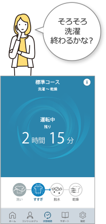 ※セキュリティー対策のため、必ず暗号化方式WPAまたはWPA2(いずれもTKIPまたはAES)の設定ができる無線LANルーターをご使用ください。通信規格はIEEE.802.11b/g/n(2.4GHzのみ)のいずれかに対応しているものが必要です。 ※アプリの利用には事前に「日立家電メンバーズクラブ」への登録が必要です。 ※アプリの利用は無料ですが、ダウンロードおよびアプリを利用の際には、通信費用がかかります。 ※アプリを利用する際は、あらかじめ利用規約とプライバシーポリシーに同意のうえ、ご利用ください。 ※アプリのサービス内容・画面デザイン・機能は、予告なく変更することがあります。また、提供サービスは予告なく終了することがあります。 ※最大5台のスマートフォンで1台の洗濯機本体を操作できます。 ※すべてのスマートフォンで動作を保証するものではありません。 ※WPA™、WPA2™はWi-Fi Alliance®の商標です。