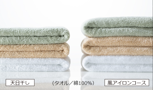 ●風アイロンコースは、衣類のシワを大幅に低減する機能ですが、衣類の量や素材、一緒に乾燥するものの種類によって仕上がりが異なります。 ●アイロンでプレスしたような効果まではありません。 ●シワが完全になくなるわけではありません。 ●生乾きや乾いた衣類の仕上げとして乾燥運転だけをした場合は、シワをとることはできません。 ●乾燥できないものには使えません(詳しくは、こちらをご覧ください)。