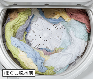 衣類の量や種類、片寄り、室温、据付状態等により、使用水量・消費電力量・運転時間が増減します。