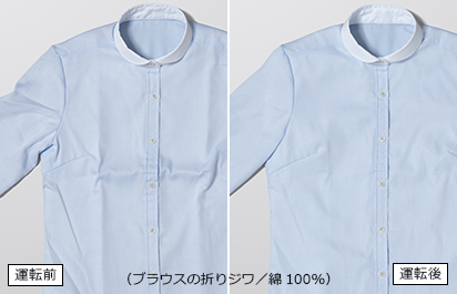 | ※1 | タバコ臭が付着したシャツの6段階臭気強度表示法にて官能評価 | スチームアイロンコース30分による | 衣類に付着したニオイ | 〈臭気強度〉 試験前:3.5 試験後:0.9(30分コース) |